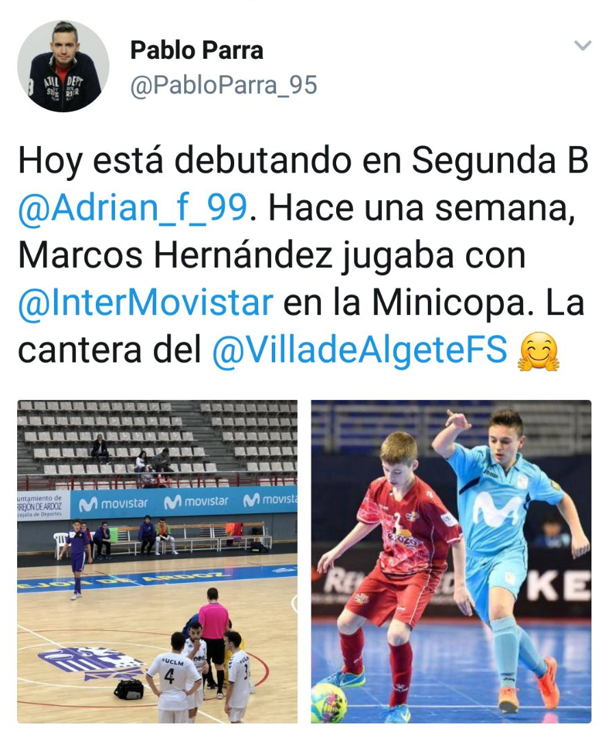 Gracias a nuestro amigo Pablo Parra y gran colaborador del club, así como exjugador nuestro, por recordarnos siempre con estas noticias. Al igual que  Pablo, tenemos dos jugadores que han salido de nuestra cantera y están logrando hacerse su sitio en esto del Fútbol Sala:
